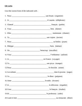 Er Verbs Worksheet / Passe Compose Er Verb Worksheet :
